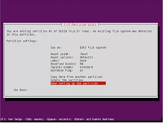 setting up the partition --> Selesai mengkonfigurasi partisi